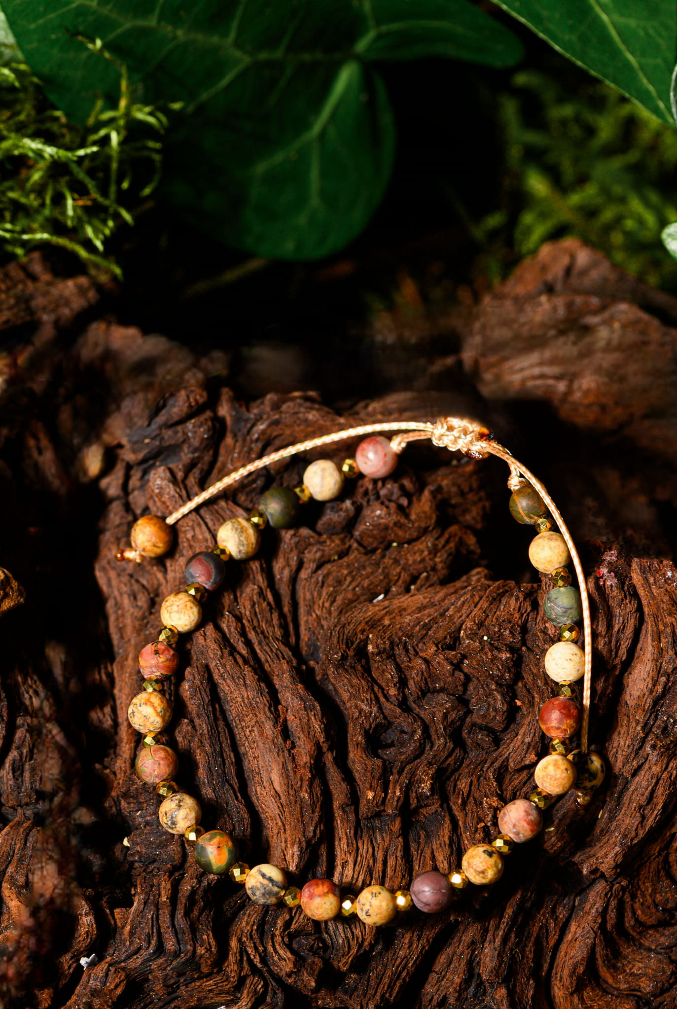 Harmonia Natury to biżuteria łącząca dwa jaspisy: Picasso w kolorach ziemi i Picture w barwach pustyni. Jaspis Picasso wnosi stabilność, ugruntowanie i spokój, a Jaspis Picture pobudza kreatywność i dodaje lekkości. Razem tworzą energetyczny duet – balans między mocą ziemi a energią pustyni, wspierający pewność siebie i wewnętrzny spokój. Nazwa „Harmonia Natury” oddaje stabilność, równowagę i twórczą inspirację.