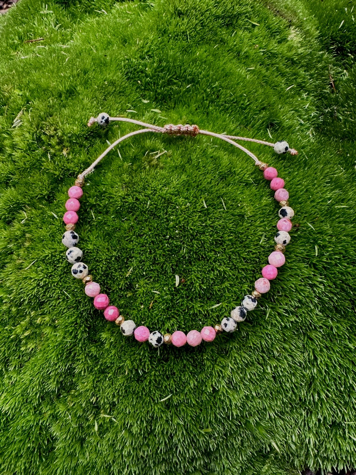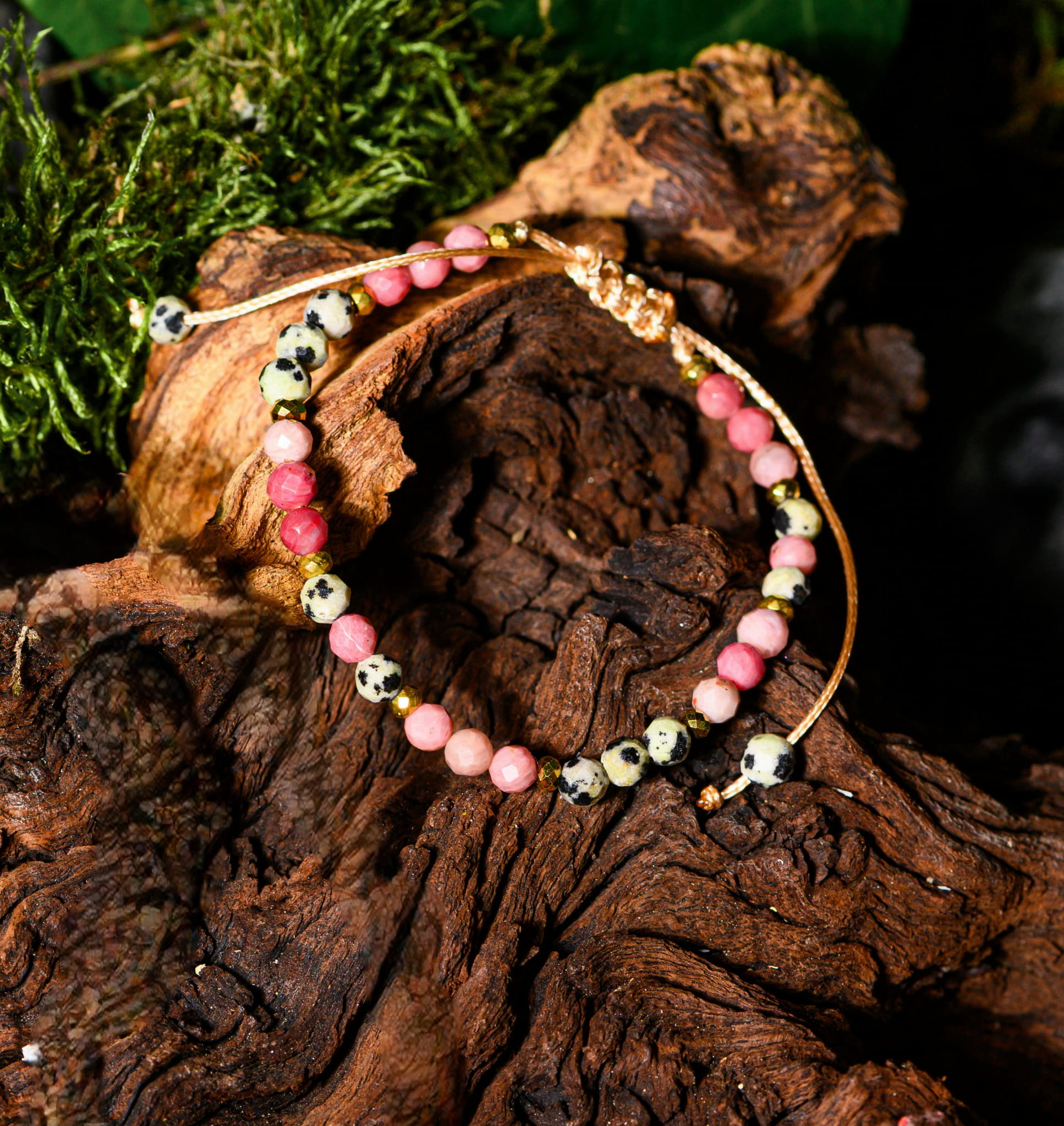 Rodonit wspiera uzdrawianie emocji, dodaje odwagi i otwiera serce na miłość, a jaspis dalmatyński wnosi radość, równowagę i ochronę.