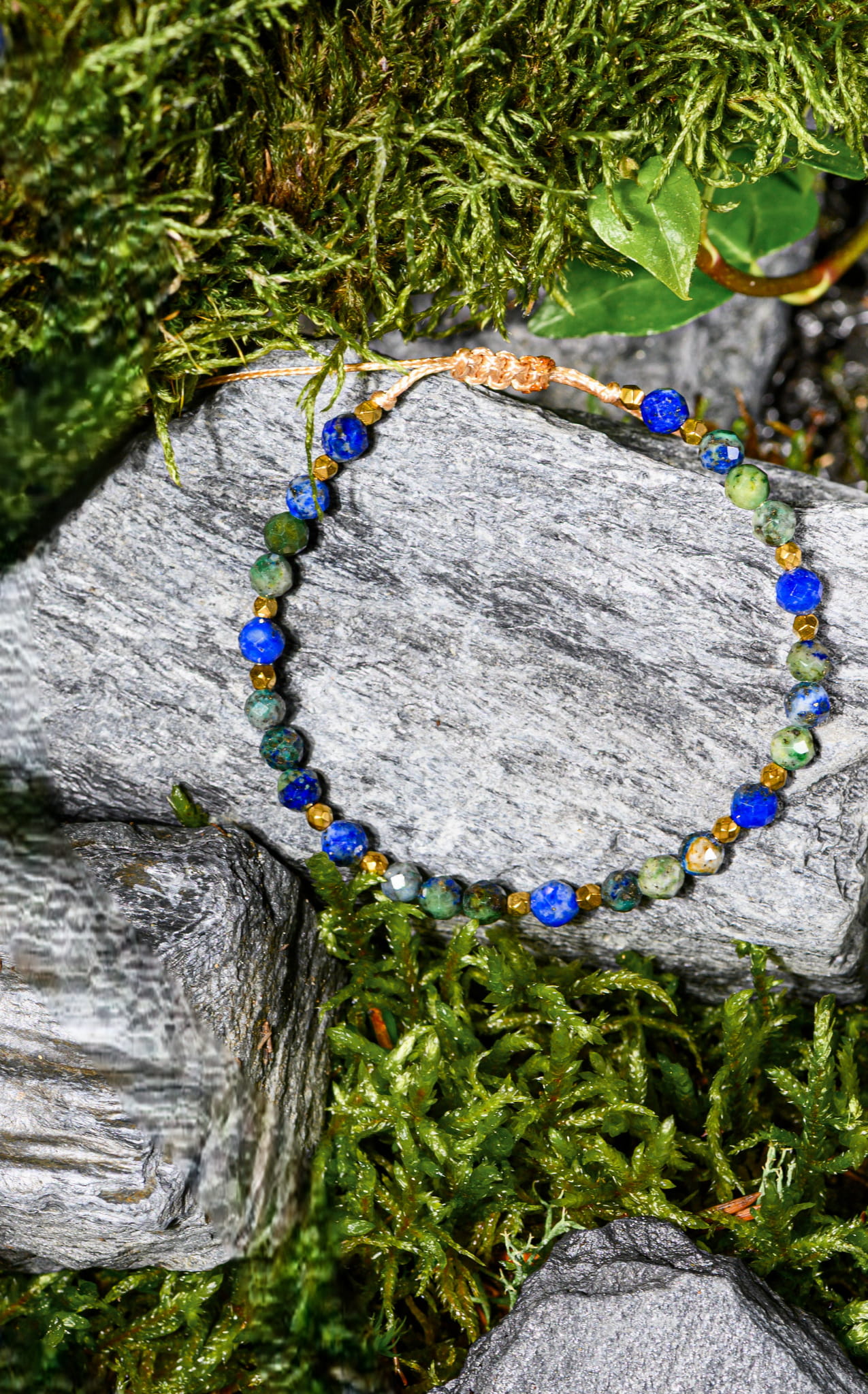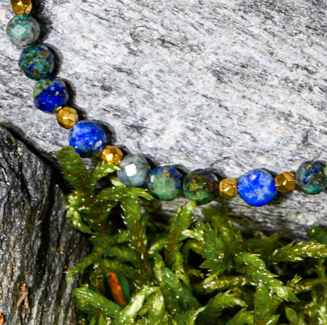 To połączenie Lapis Lazuli i Lapis Lazuli Phoenix – subtelnych kamieni wspierających energię serca i symbolizujących odrodzenie. Lapis Lazuli wnosi mądrość, prawdę i intuicję, a Lapis Phoenix delikatnie wspiera transformację i połączenie z naturą.
