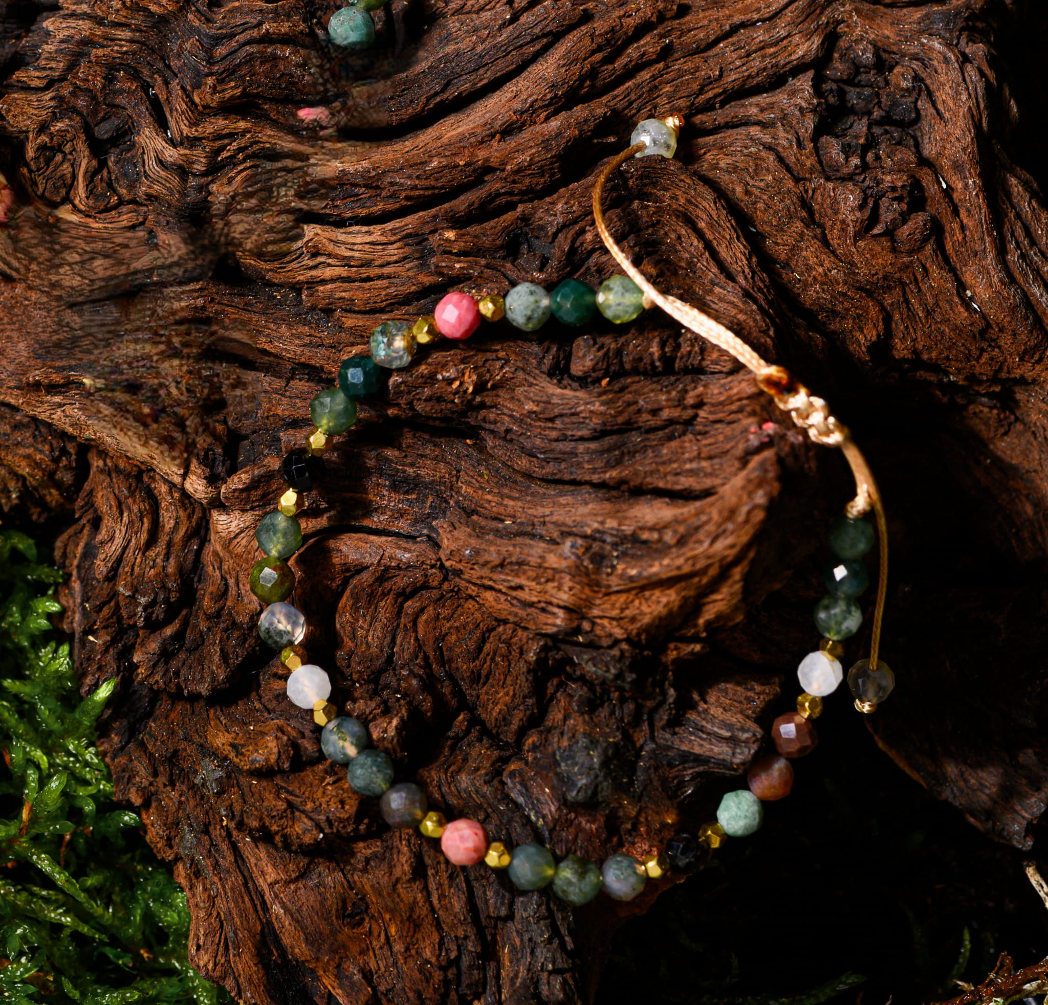 Bransoletka damska "Leśna Mgła" z Agatu, Turmalinu, Kamienia Księżycowego i Rodonitu