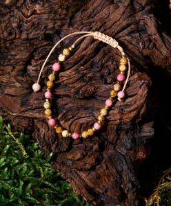Pustynna Róża to biżuteria z jaspisu obrazkowego i Rodonitu, harmonizująca siłę ziemi z mocą serca. Jaspis obrazkowy symbolizuje mądrość, stabilność i ugruntowanie, a Rodonit wnosi ciepło, uzdrawia emocje i wspiera miłość do siebie oraz innych. Razem tworzą subtelną aurę przewodnika, przypominającą, że nawet w trudnych chwilach można odnaleźć piękno, spokój i siłę serca. Nazwa „Pustynna Róża” odzwierciedla równowagę między wytrwałością a delikatnym rozkwitem uczuć.