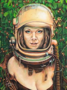 "Kosmonautka" 40x50cm - Wydruk na płótnie w ramie i passe partout