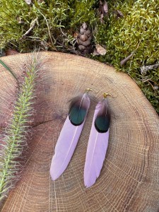 Limitowane Kolczyki z piór w kolorze pudrowy róż