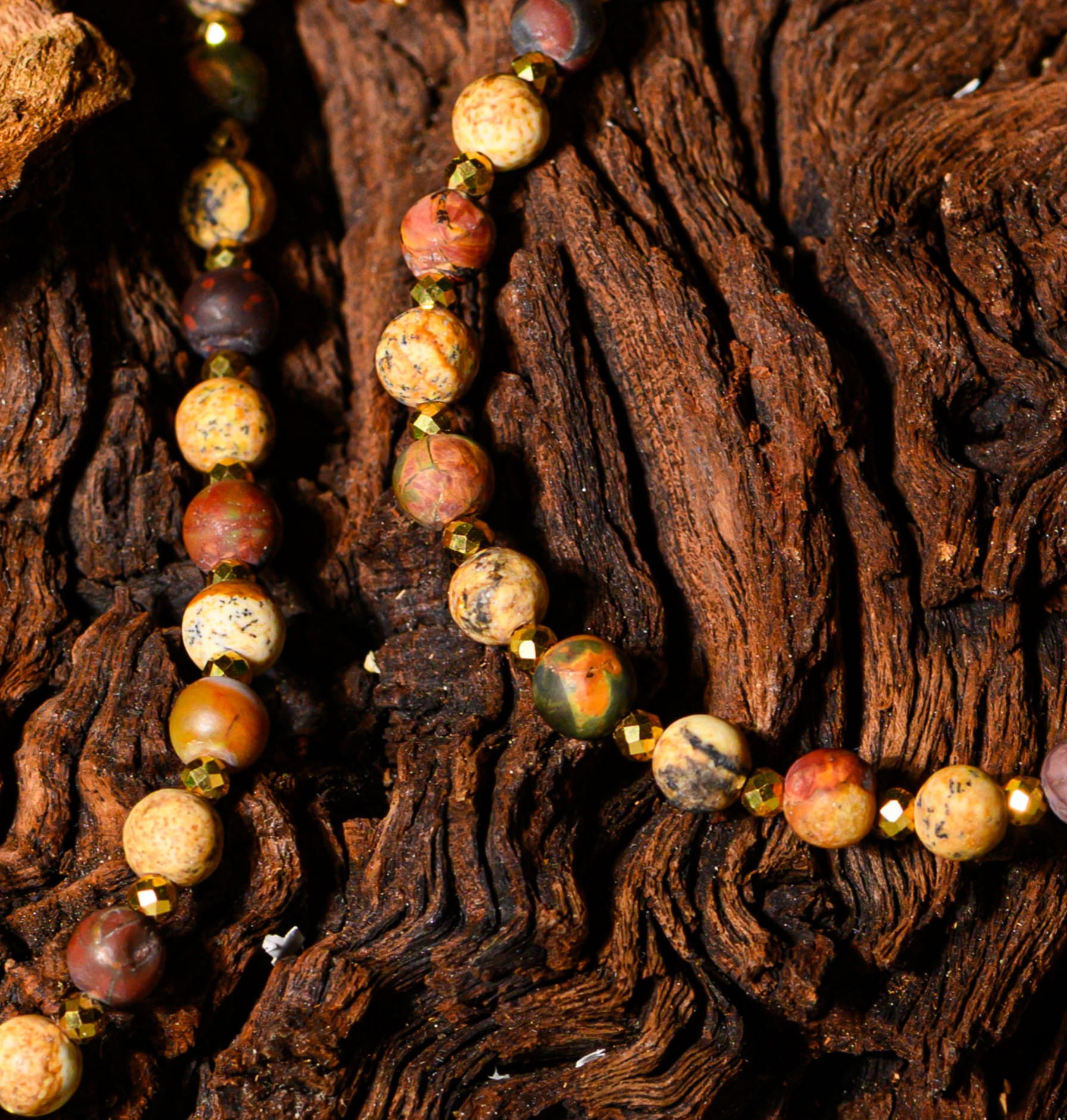 W świetle porannego nieba, gdy pierwsze promienie słońca dotykają ziemi, narodziła się Harmonia Natury to biżuteria łącząca dwa jaspisy: Picasso w kolorach ziemi i Picture w barwach pustyni. Jaspis Picasso wnosi stabilność, ugruntowanie i spokój, a Jaspis Picture pobudza kreatywność i dodaje lekkości. Razem tworzą energetyczny duet – balans między mocą ziemi a energią pustyni, wspierający pewność siebie i wewnętrzny spokój. Nazwa „Harmonia Natury” oddaje stabilność, równowagę i twórczą inspirację.