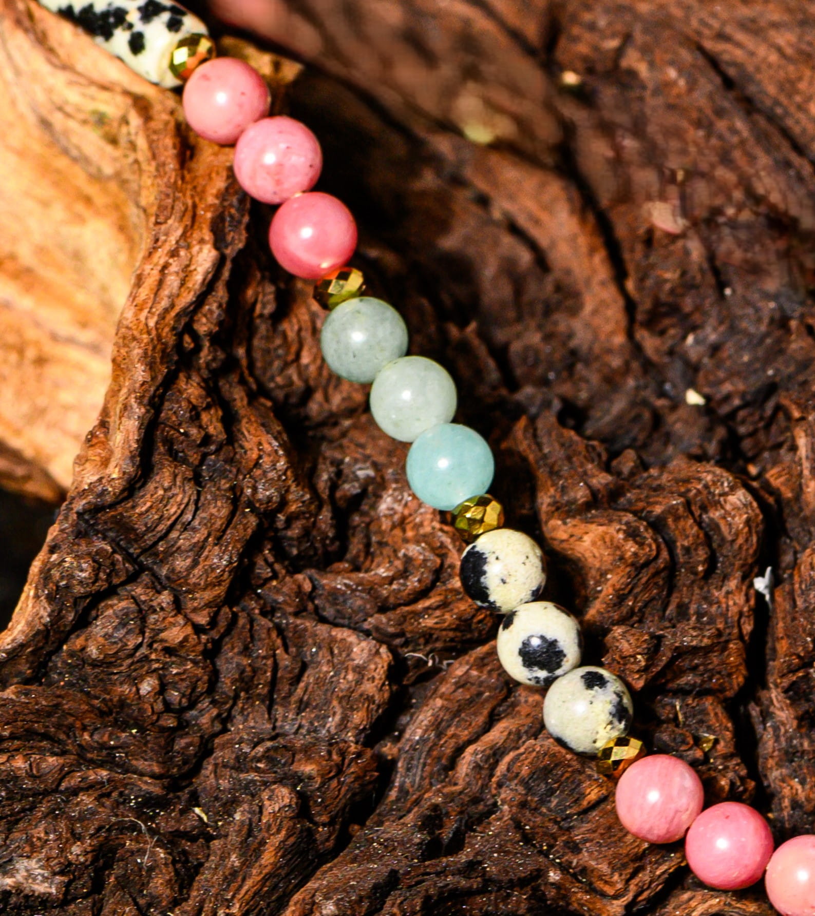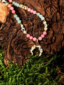 Jaspis Dalmatyński dodaje lekkości, radości i chroni przed rozproszeniem energii, pomagając zachować równowagę między światem wewnętrznym a zewnętrznym.