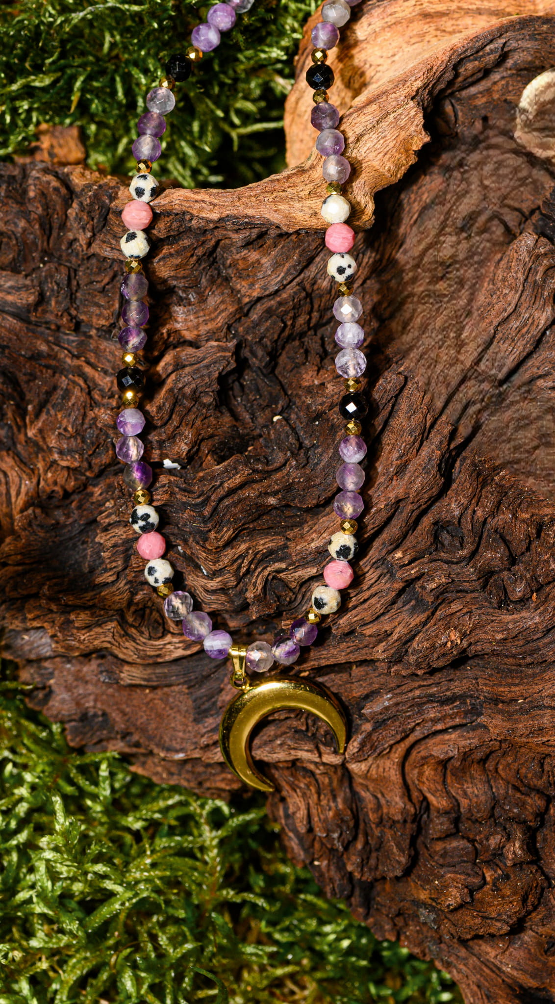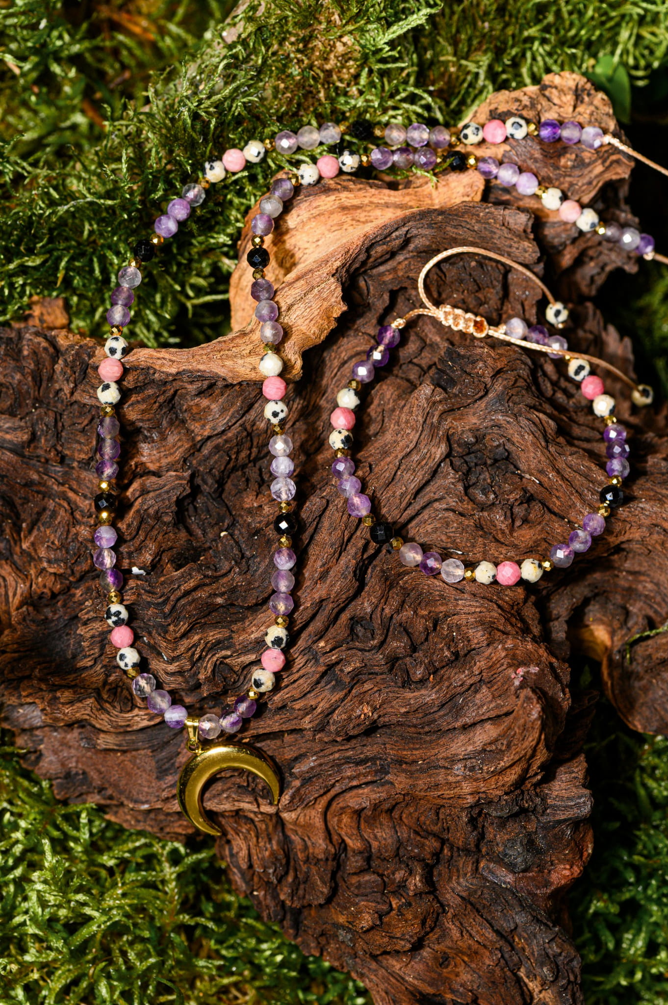 Naszyjnik damski "Zaklęcie Wiedźmy" z Ametystu, Turmalinu, Jaspisu i Rodonitu