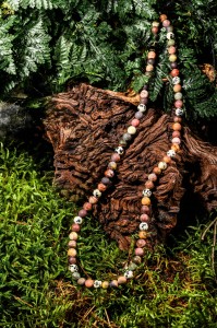 Ręcznie wykonane z naturalnych kamieni (6 mm), na mocnym czarnym sznurku.