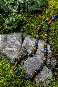 Ręcznie wykonane z naturalnych kamieni (6 mm), na mocnym czarnym sznurku.