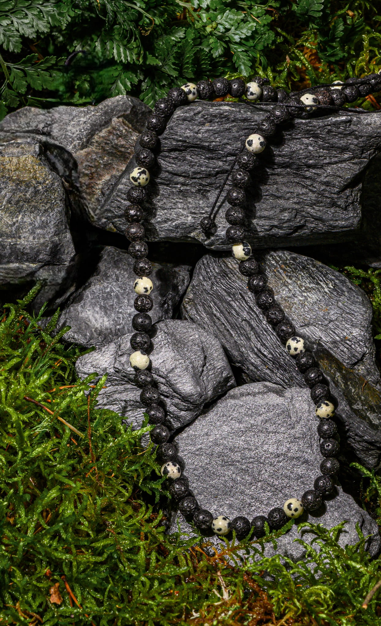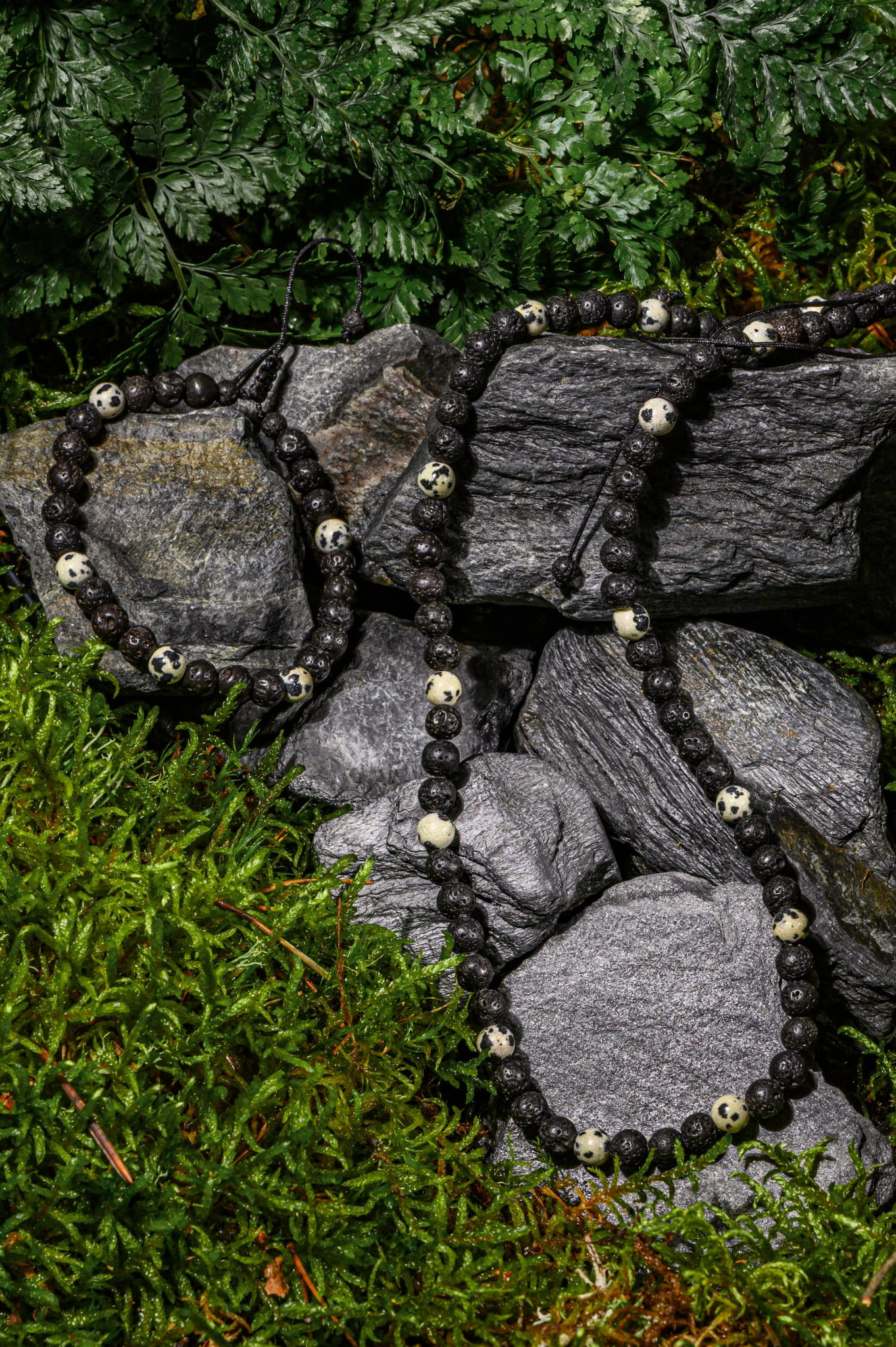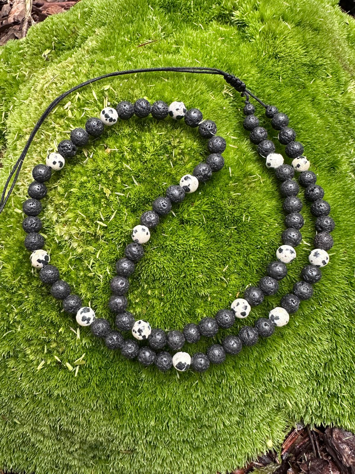 Ręcznie wykonane z naturalnych kamieni (6 mm), na mocnym czarnym sznurku.