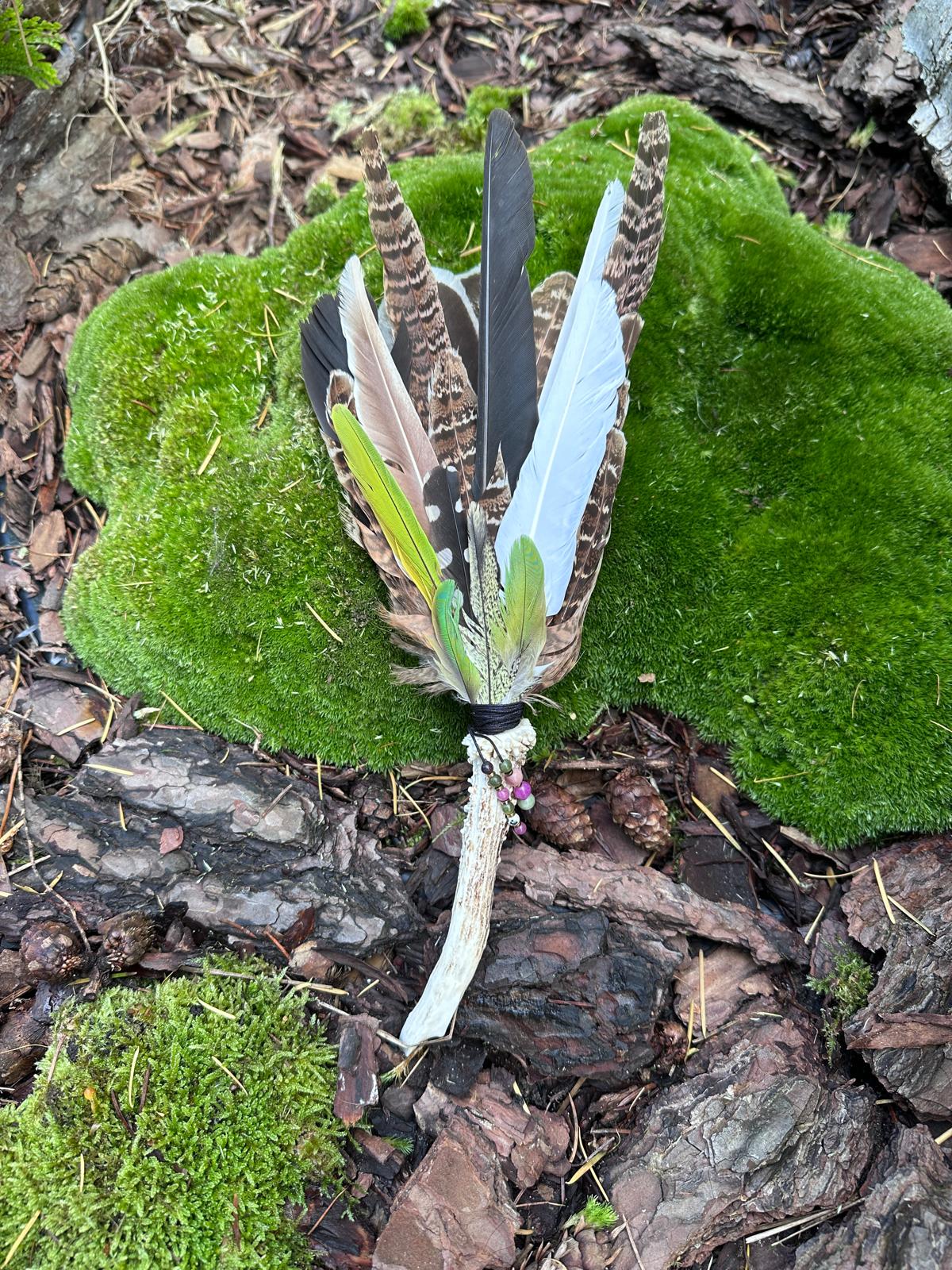 Różdżka ceremonialna -Pióra w rogu Koziołka