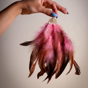 Rózowe Kolczyki z piór "Skrzydła Bogini" Zmysłowa długość (średnie)