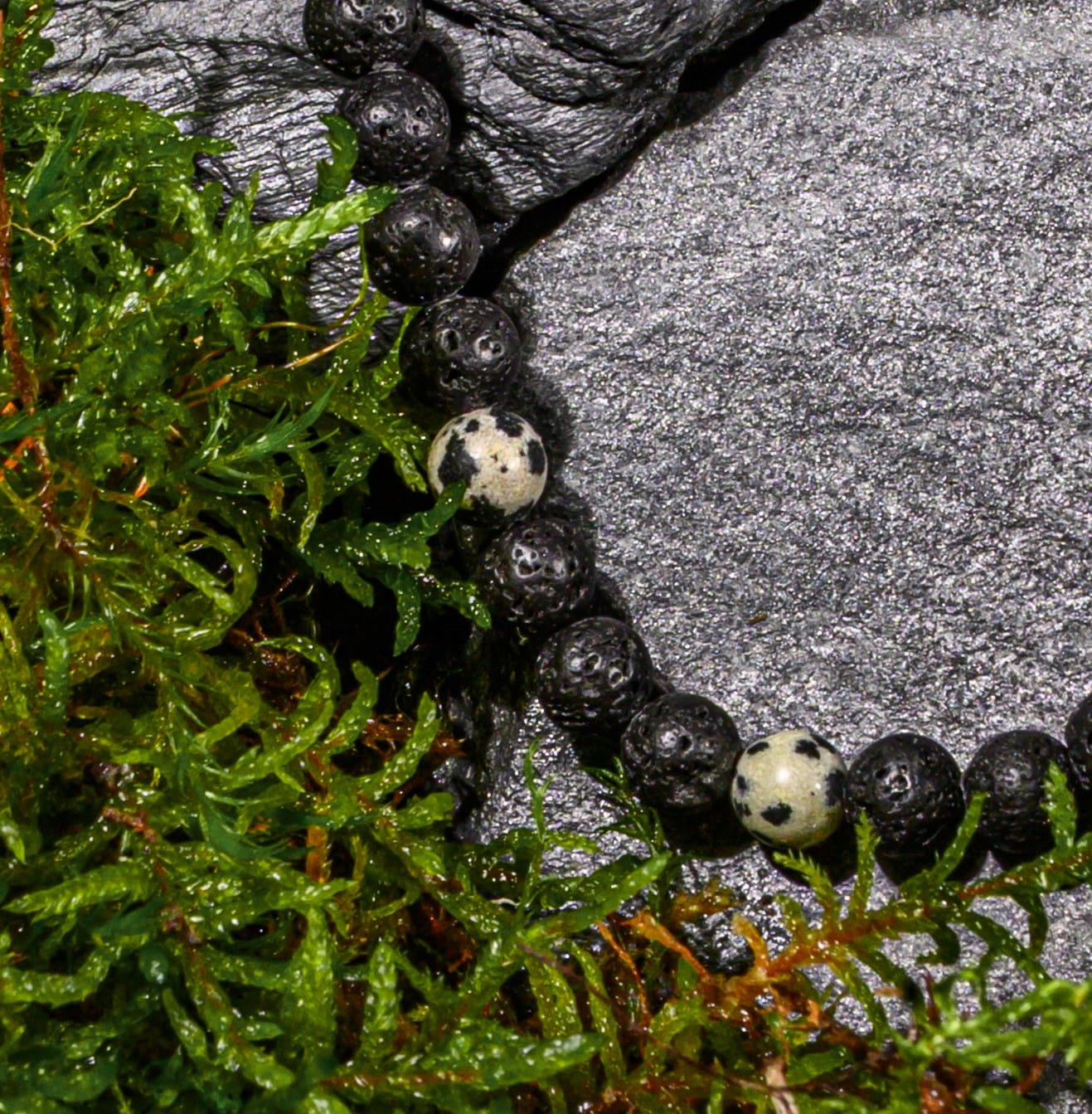 Ręcznie wykonane z naturalnych kamieni (6 mm), na mocnym czarnym sznurku.